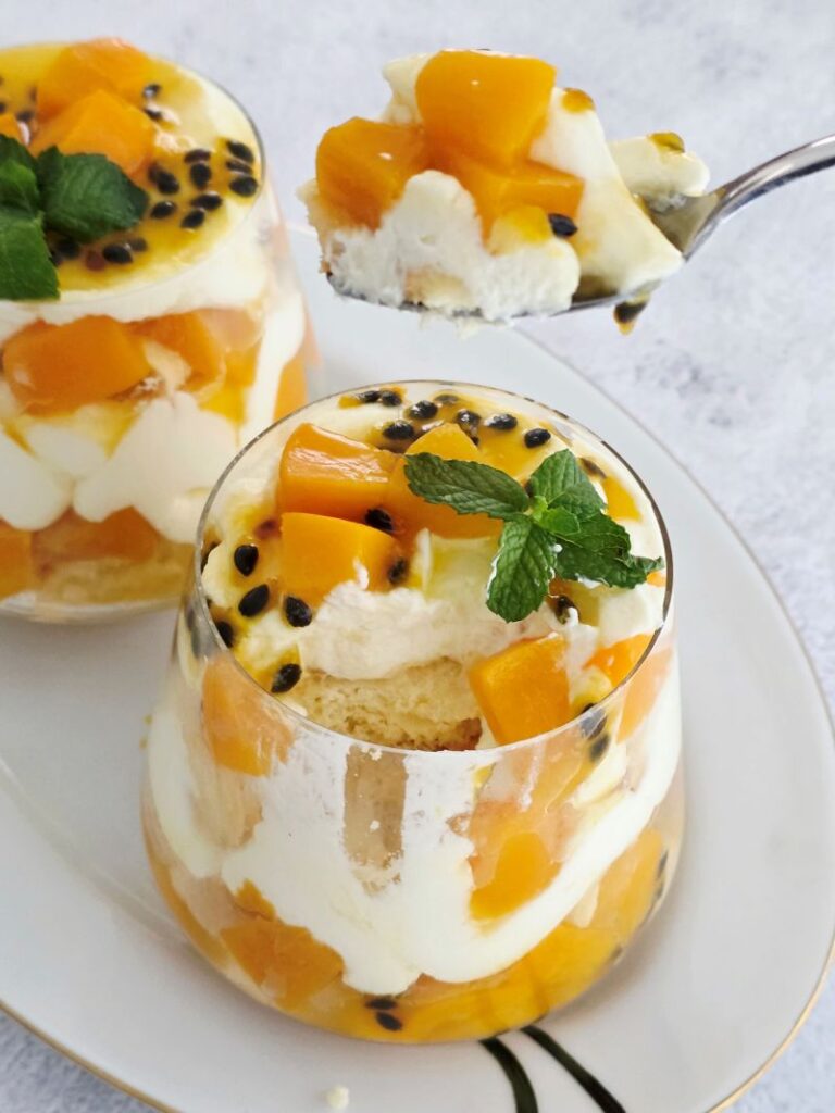 A fresh twist on the classic Italian dessert, this Peach Tiramisu layers juicy peaches, mascarpone cream, and soft ladyfingers, finished with a bright passion fruit topping. Quick to assemble and make-ahead friendly, it’s perfect for summer entertaining.